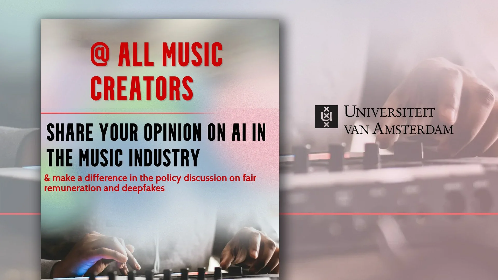 Research is underway to determine fair compensation for Dutch musicians and rights holders in the age of generative AI. You can contribute by completing the survey: https://uva.fra1.qualtrics.com/jfe/form/SV_cIkHFhi6lov8RIG